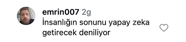 Yapay zekâdan ben de korkuyorum artık. :D Eskiden annem bir videoya inandığında, anne inanma şunlara yaa yapay zekâ o diyordum, şimdi beraber inanıyoruz. XD