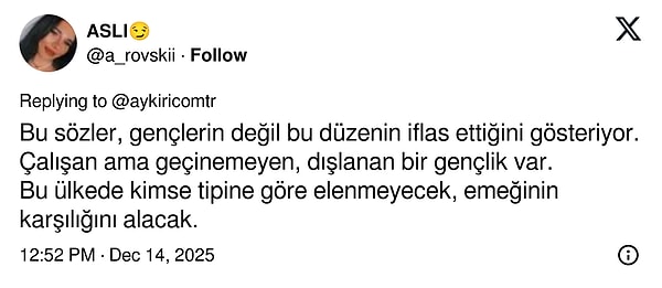 Mor Mikrofon isimli kanalın sokak röportajında konuşan bir genç, yaşadığı duruma isyan etti. Dış görüşününe bakarak iş vermediklerini söyleyen genç 'Biz gençlerin önünü neden kapatıyorlar? Asgari ücret 22 bin TL. Çalışıyorum yetmiyor.' dedi.