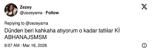 Sosyal medya hesabından paylaştığı videoda ikilinin birlikte gülüp eğlendiği anlar dikkat çekti. Şahin paylaşımında gelen yorumlara da esprili bir dille yanıt verdi. Ünlü oyuncu açıklamasında, “Düz adam sami olan ben, eğlence programında evimin salonunda konuşur gibi bir samimiyetle beyime tedbir değil de aramızdaki espri dolayısıyla ‘ürkek’ dediğim için toksik maskülenitenin kitabı yeniden yazılıyor şu an. Ay daha neler konuştuk. Tatlı tatlı uyarı mı koyulsaydı ‘has erkolar izlemesin incinirler’ diye?” ifadelerini kullandı.