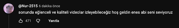 Aslında geri dönüş havası yalnızca son paylaşım yüzünden oluşmadı. Kanal açıklama kısmında yer alan 'Merhaba ben Enes Batur ve sizi çok özledim... Yakında...' mesajı da bir süredir takipçilerin radarındaydı.