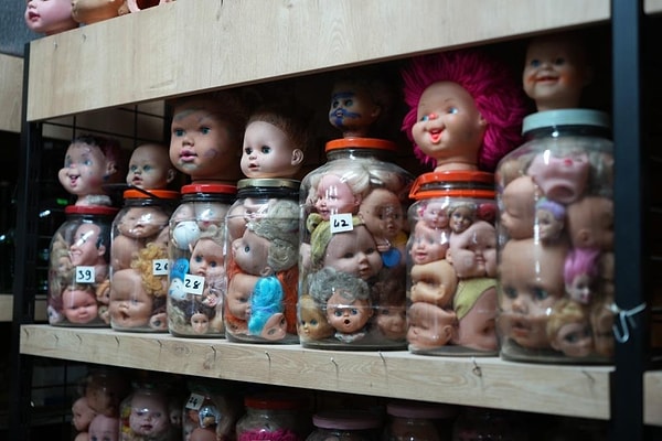 Kocaeli'de antika dükkanı işleten Hamdi Dinibütünoğlu, yalnız yaşayan bir koleksiyonerden satın aldığı ve görenleri hayrete düşüren 5 bin parçalık oyuncak bebek kafası koleksiyonunu sergiliyor. Kavanozlara ve akvaryumlara doldurulmuş binlerce kafa, kimileri için ürpertici bir görüntü oluştururken, koleksiyonun ardındaki hikaye ise dikkat çekiyor.
