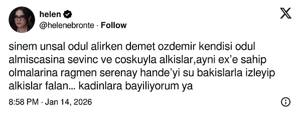 İşte tam da o anlarda Serenay Sarıkaya'nın Hande Erçel ve ablası Gamze Erçel'e bakışı, Hande'nin konuşması biter bitmez ilk alkışlayan kişi olması dikkat çekti.