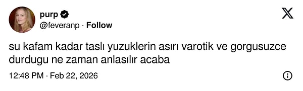Güneşten 'yüzünü korumaya çalışırken' verdiği pozda göze giren yüzüğü ise X kullanıcılarının radarından kaçamadı.