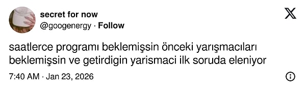Programda bu kez yarışmanın daha başında yaşanan bir an dikkat çekti. Yarışmaya katılan 24 yaşındaki Selin Kuranoğulları, henüz ilk soruda verdiği cevapla yarışmaya veda etti.