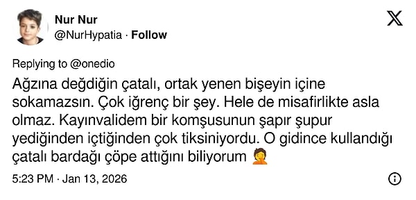 'hatasizkullanici' isimli medya kullanıcısı, misafiri gittikten sonra, içine kaşık koymasına rağmen kendi çatalıyla yediği reçeli çöpe döktüğü anları paylaştı. O görüntüler sosyal medyayı ikiye böldü.