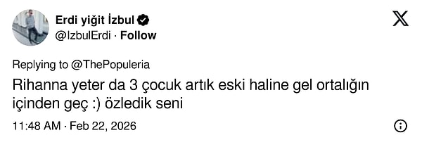 Üç çocuk annesi olan ünlü şarkıcı, sahnelerden ve yoğun çalışma temposundan uzak, daha sakin ve gözlerden uzak bir hayat sürmeyi tercih ediyor. Hayranlarının yeni albüm beklentisi sürerken, Rihanna’nın önceliğinin artık ailesi ve annelik olduğu her fırsatta dikkat çekiyor.