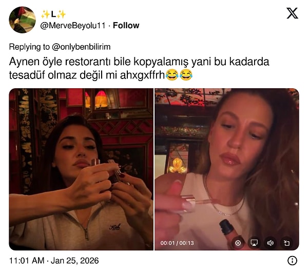 Dikkat çeken ilk detay ise Hande Erçel'in Paris'ten paylaştığı rujlu videonun hemen hemen aynısını aynı restorandan paylaşması oldu. Bu, 'kopya' iddialarının yeniden fitillenmesine sebep olan ilk hadiseydi.