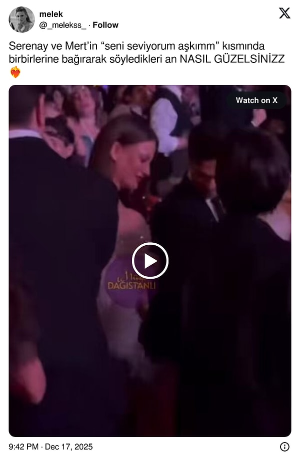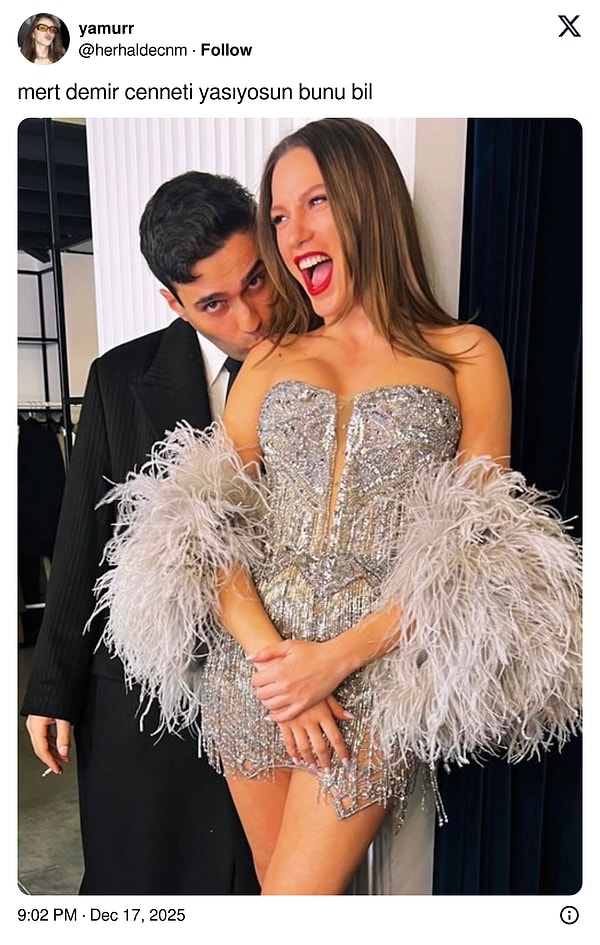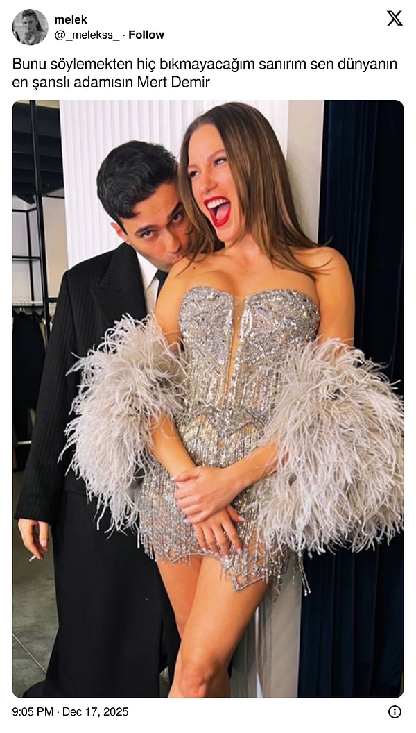 Serenay Sarıkaya’nın aşk dolu paylaşımlarına bir süredir alışığız ama bu kez romantizmin dozu epey yükseldi! Ünlü oyuncu ile sevgilisi Mert Demir’in katıldıkları yılbaşı partisinde dans ederken birbirlerine attıkları bakışlar sosyal medyayı adeta kilitledi. Serenay Sarıkaya’nın peş peşe paylaştığı aşk dolu kareler de kısa sürede gündem oldu. Sosyal medya kullanıcıları romantizmin dibine vurulan o anlara kayıtsız kalamadı. Yorum yağmuru gecikmedi.