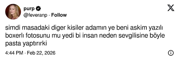 Nilperi Şahinkaya'nın sevgilisi Baturalp Bekar, Nilperi'nin 37. yaşına özel hazırlattığı pastanın üstüne leoparlı bir iç çamaşırı giyip kaslarını sergileyen pozunu koydurmaya karar verdi. Pastanın üstüne ise 'Ye Beni Aşkım' yazdırdı.