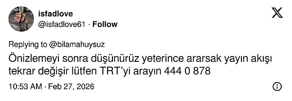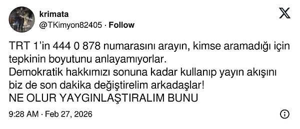 Bazı izleyiciler duruma o kadar öfkelendi ki çareyi TRT'yi aramakta buldular.